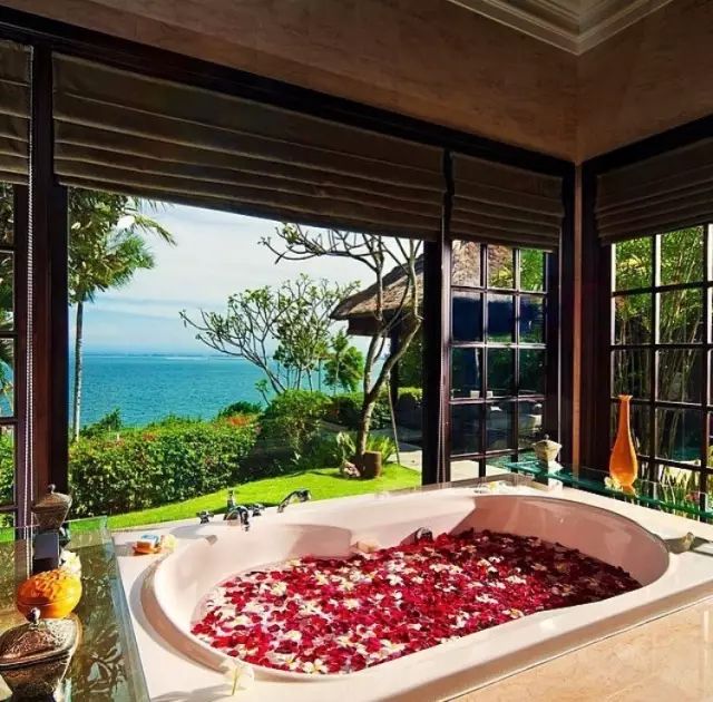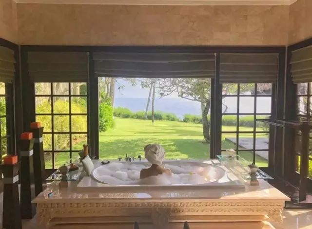 自从吴奇隆和刘诗诗在巴厘岛的阿雅娜大婚之后,这家酒店的价格也是蹭蹭地往上涨,别墅的价格已经涨到比宝格丽还高了。不过别墅里的浴室真的极尽奢华,浴室是敞开式的,浴缸正对着私人草坪和泳池,贵妇感立现。
