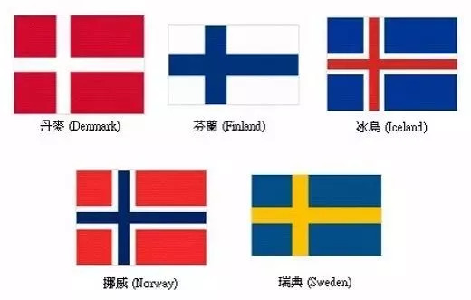 北欧五国分别是指丹麦、瑞典、芬兰、挪威、冰岛,因为同在欧洲最北端,相似处很多,就连国旗都长得很像,简直是五胞胎。