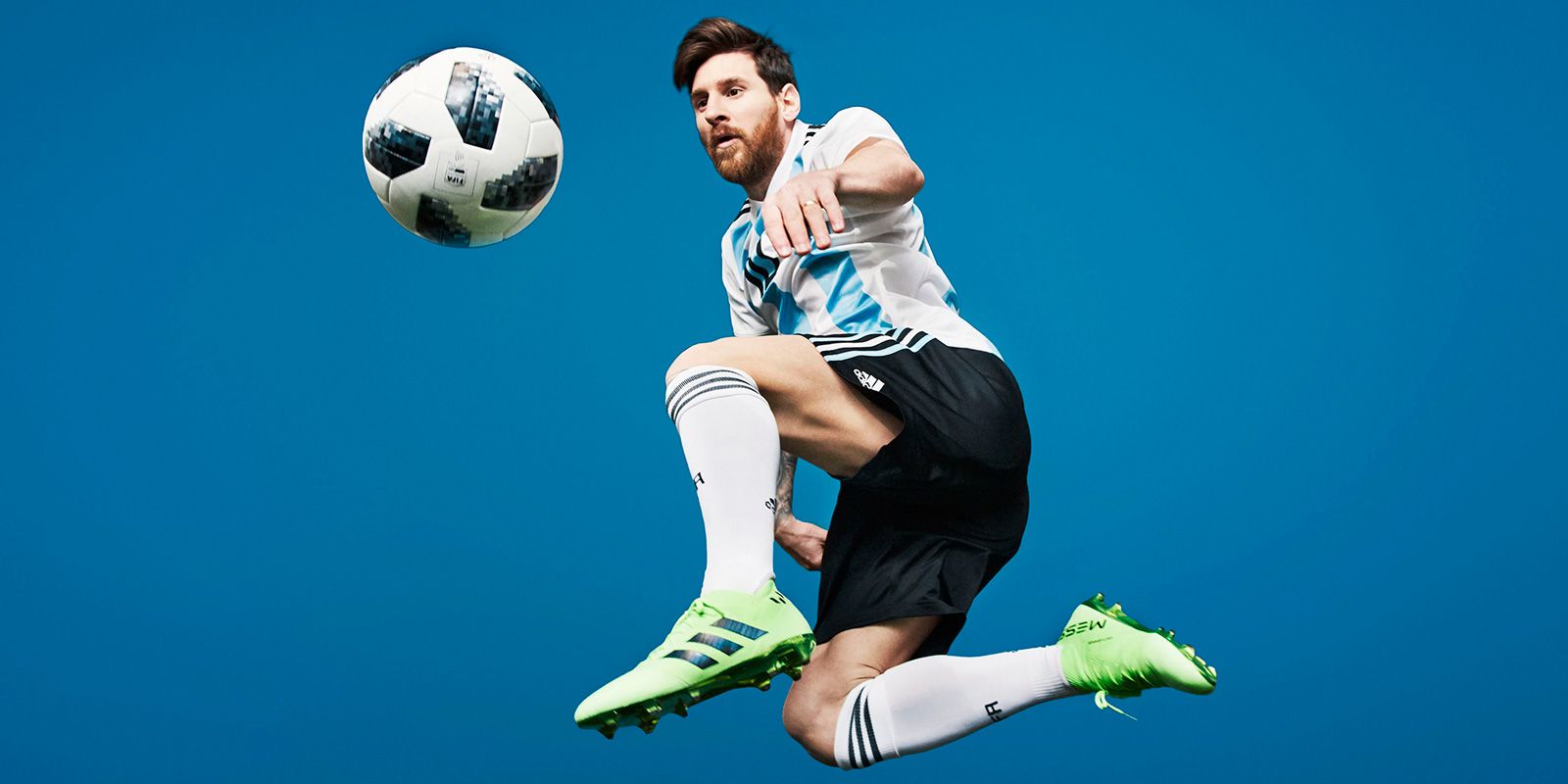 在广告中,梅西需要迎着一个抛起的足球,摆腿做出射门状。摄影师为梅西准备了一块纸板,上面贴满照片,形象地向梅西传达广告所需的姿势,替身也为梅西作了几次示范。造型师花了几十秒搞定梅西的球衣之后,广告正式开始拍摄了。