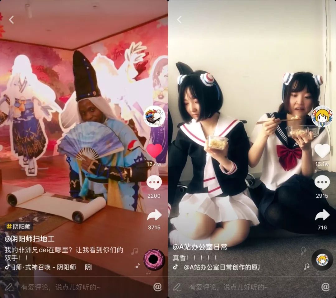 在持续不断刷抖音的一个多月时间里,ACGx最大的感触就是,相比起QQ群、QQ空间、百度贴吧、微博、A站、B站等传统二次元爱好者相对聚集的互联网社区,存在于抖音中的二次元文化其实即是熟悉也是陌生。熟悉的是这些内容的都是来源于目前活跃在市场中的ACG产品,而陌生的则是这些二次元“抖友”们对ACG内容的解读方式,其实更为大众或者说是更加“三次元”,也更容易让人上瘾。