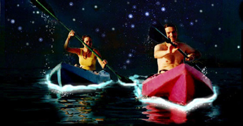 在一个没有月亮的夜晚,乘船穿过红树林进入比耶克斯岛一处海湾,接下来发生的事情将会令人惊叹。船桨划过的水面泛出神奇的蓝色荧光,灿若星河。偶尔有鱼儿跃出海面,带出闪着荧光的浪花,在黑漆漆的海面上划出一道格外优美的弧线。场景就像《少年Pi的奇幻漂流》中那片幽蓝荧光的海水。这里是世界上著名的生物荧光海滩之一,因为水中生长着特有的一种藻类单细胞生物在受到外界刺激后发光而成。
