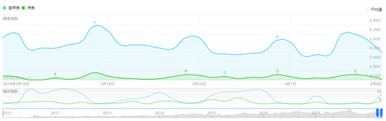 百度指数显示,今年,酸菜鱼的指数超过了火爆的烤鱼,酸菜鱼成为了单品爆款。