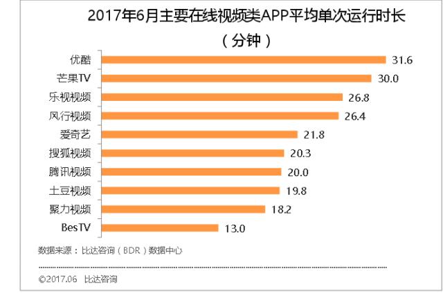 2017年6月比达咨询数据,优酷用户存在着较高的粘性