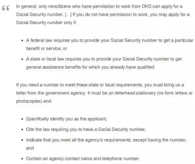 根据社保局SSA的规定,只有可以在美国合法工作的人才能申请SSN,SSA官网原文如下: