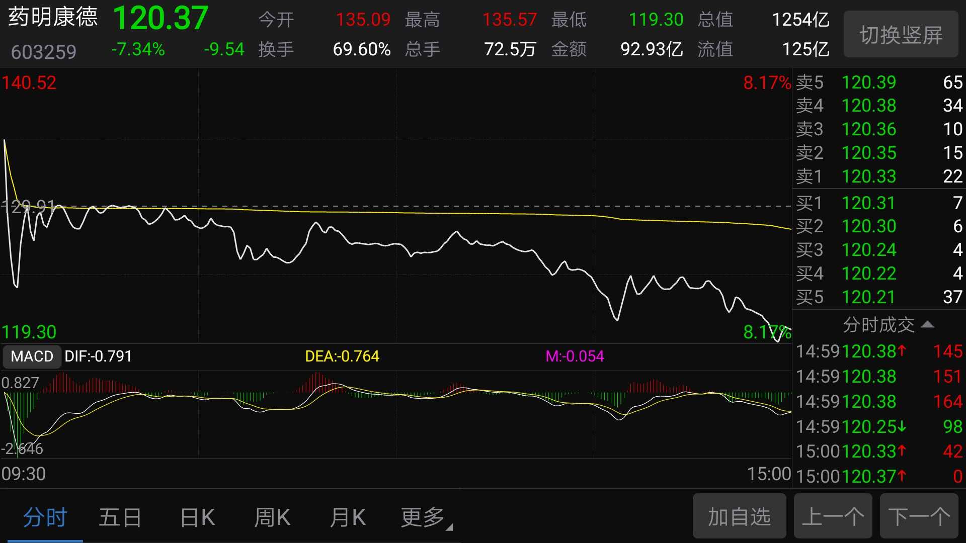然而,药明康德股价很快开始持续走低,盘内一度出现119.3元/股的最低报价。