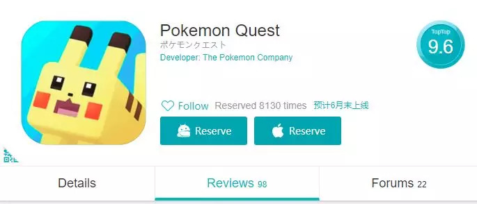 此外在TapTap上,《宝可梦探险寻梦》的评分高达9.6分,6月底上线的手游获得了超过8000次预约。