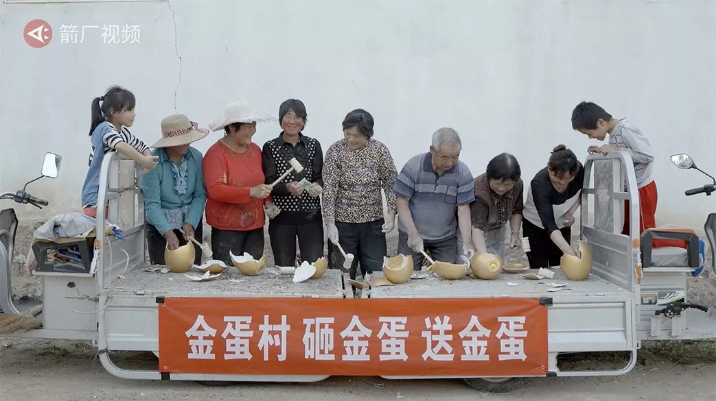 倒数三、二、一,金蛋砸开了,村民们和围观的孩子都欢呼雀跃,洋溢着离幸运很近的微笑。尽管七个金蛋中,只有一个蛋里有张十块钱的钞票。