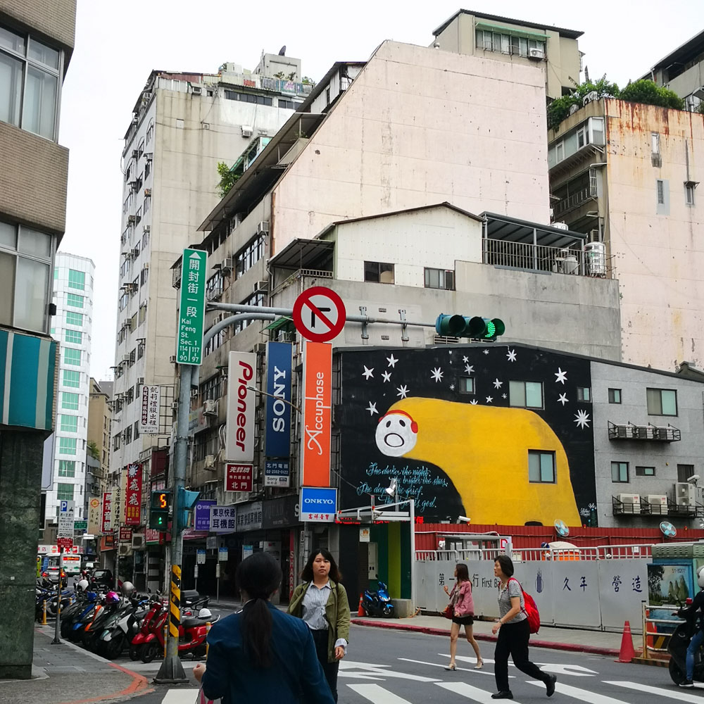从“台北车站”地铁站走出来已经是下午三点,热浪扑面,我又退回玻璃门里戴上墨镜。走过广场和马路之后,视野骤然变窄。走在这种骑楼的荫蔽里可以一直不晒到太阳,适合长距离步行。台湾人讲软糯的闽南语、客家话,海风一样湿湿黏黏,听到7-11店员的台普,我一下子就对自己“l”“n”不分的普通话释怀了。