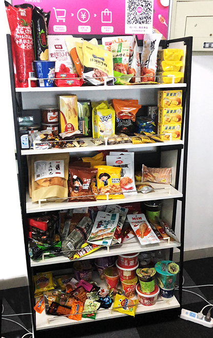 在办公室加班到深夜的小美肚子饿了,以往这个时候,只能叫外卖果腹的她,如今已经有了新的选择——她踱步走出办公室,走到距离工位仅仅几十米的大厅里,从无人货架上自己取了面包,饮料和薯片,然后用微信或支付宝扫码完成支付,一顿简单的晚餐就这样有了着落。
