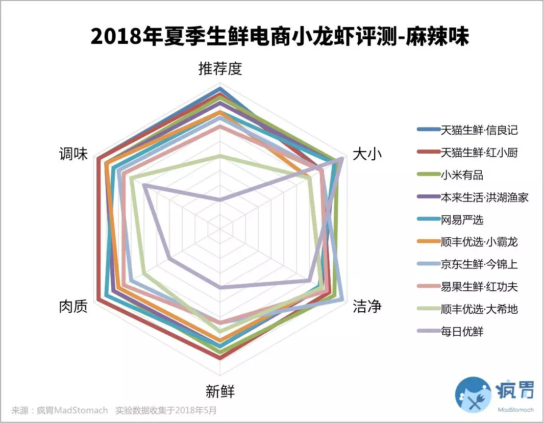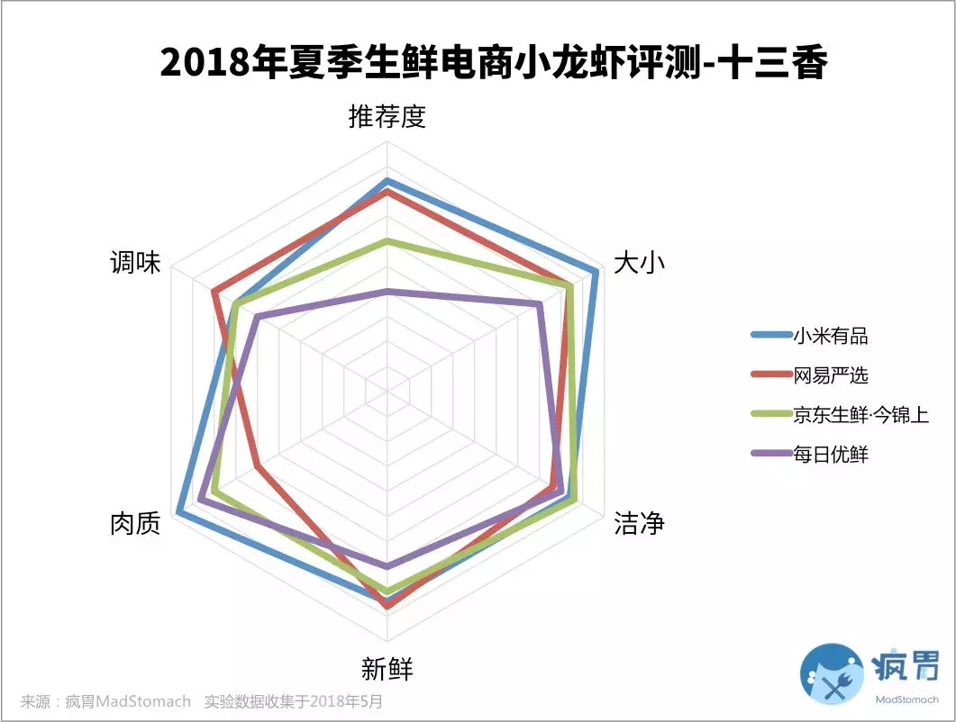 三个席位光天猫生鲜就占了两个,可见天猫小龙虾选品小哥活儿之好,此外,小米有品第一次参与疯胃君评测就挤进前三,感觉钱包君即将晚节不保。