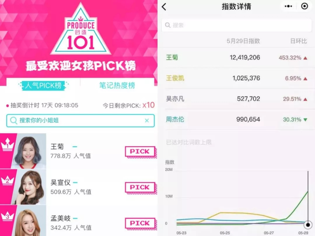 从微信话题指数来看,29日的指数已经突破千万,一跃超过王俊凯和吴亦凡排名,日环比增长达到453%;从百度指数来看,王菊的日平均搜索指数达到18万,日增长幅度达到352%;