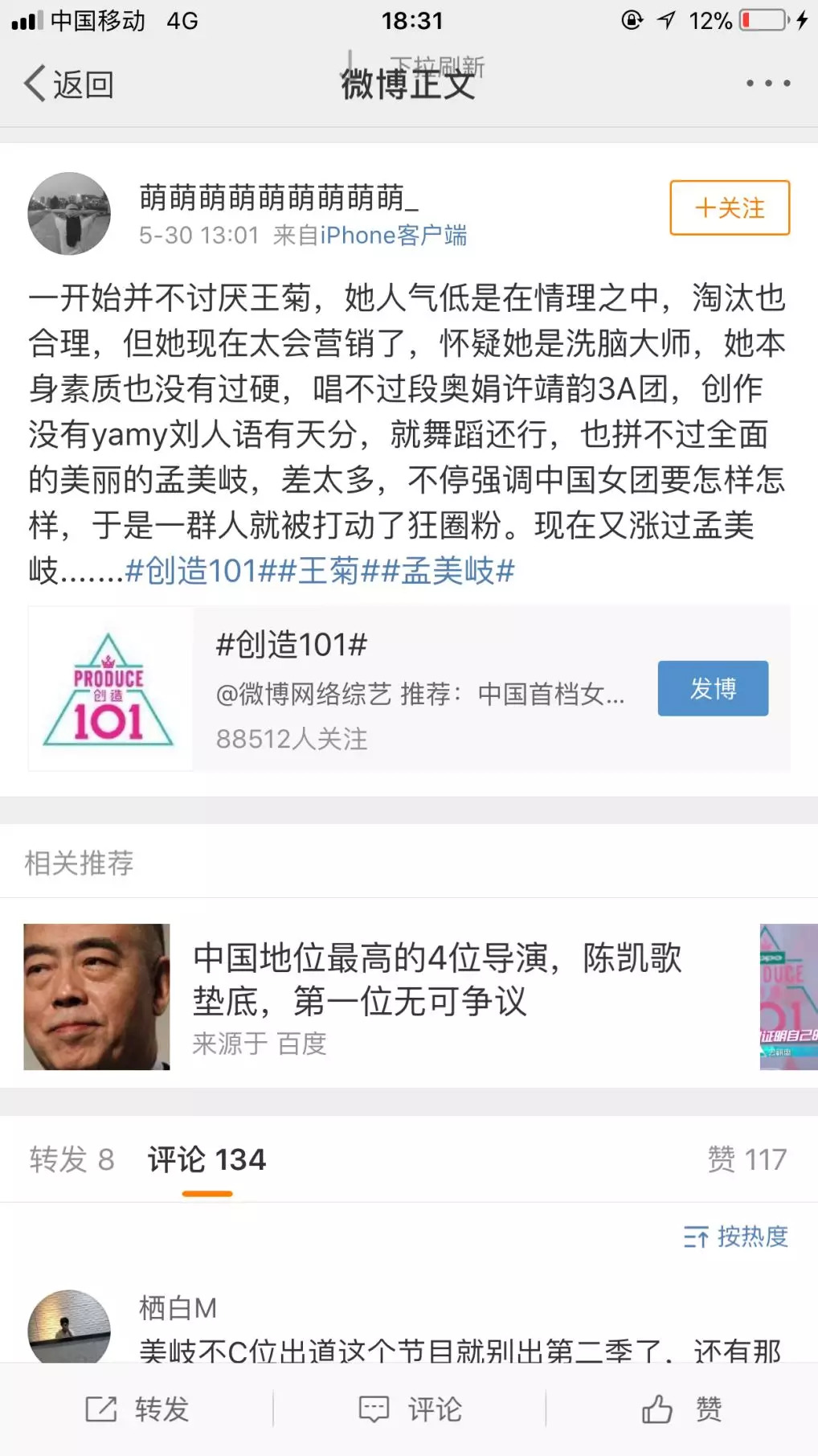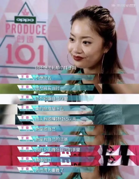 “101这个比赛中的大部分女生都“人设感”太重了,就像流水线上包装出来的工业产品,但是王菊不一样,她有阅历,真实,自信,并且敢于表达自己的观点。”