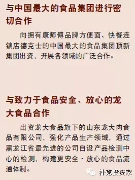 ·出资顶新集团控股公司——顶新(开曼岛)控股有限公司,该公司是中国大陆及台湾地区食品与流通业最大的企业。