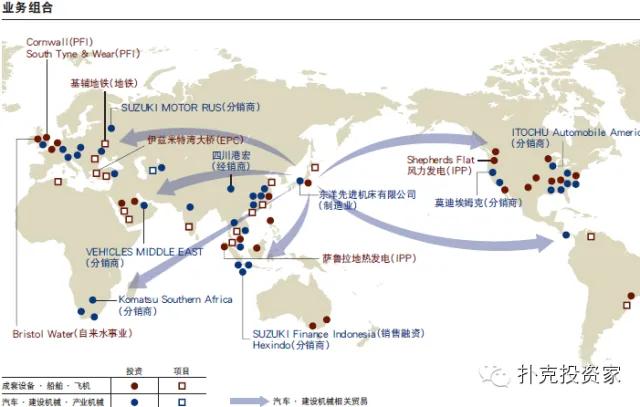 现在,伊藤忠商事已成为一家在世界65个国家和地区拥有约130个据点的大型综合商社,在纤维,机械,金属,能源,化工品,粮油食品,生活资材和住居,信息通信,保险,物流,建设,金融等各领域从事国内贸易,进出口贸易,三方贸易,以及国内外贸易投资。整体业务领域极为广泛,让人眼花缭乱。
