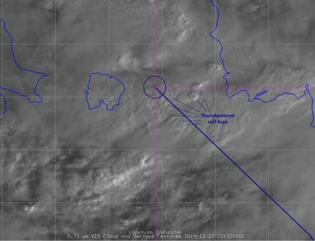 - 飞机失联时,附近可能有大面积的恶劣天气干扰,包括飞机巡航高度上方的强雷暴和云层。过去一周,罕见的强降雨已经在泰国、印尼和马来西亚的部分地区造成洪水泛滥。