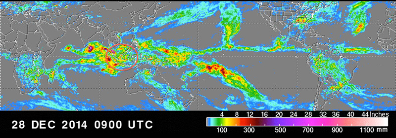 热带辐合带内海洋温度远高于平均值,容易造成破坏性风暴。近日,印尼、马来西亚和泰国都遭遇罕见的强降雨,目前洪水造成超过13万人无家可归,在马来西亚和泰国至少23人死亡。