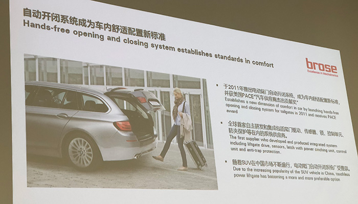 当然,作为一家拥有丰富产品线的德国零部件制造商,博泽在汽车座椅上有关安全方面的理念和造诣也十分超前。据洪康介绍,汽车座椅是车内最重要的安全件之一,座椅骨架在车辆发生碰撞时所承受的冲击力会达到甚至超过人体和座椅自重之和的20倍之多。即便是在电气化和轻量化的行业背景下,安全依旧是研发第一要务。比如博泽研发并于2016年量产的后排中扶手行李箱通道,采用有机复合板材,比传统钢制骨架轻40%,使每辆车最多减重1.5公斤。同时,其结构刚度则得到了加强,确保在各种环境条件下都能稳定运行,在轻量化与安全性之间取得了平衡。