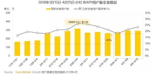 例如,小红书,作为综艺节目《偶像练习生》的赞助商,借助年轻人聚集的节目平台,瞄准追求时尚的理念,适时扩大消费概念,借助情感维系法,在年轻群体中取得了较好的宣传影响力。近期的QuestMobile报告显示,《偶像练习生》播放期间,小红书APP周新安装用户数稳步上涨,期末较期初增长65%,7日留存率也提高3个百分点。由此表明,《偶像练习生》对小红书用户新安装的拉动效果较好。