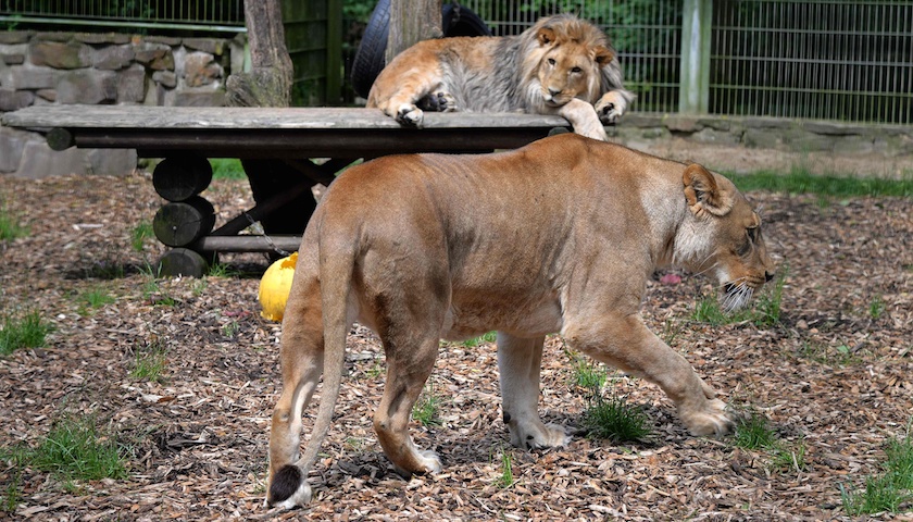 德国特里尔当地警方称,两头狮子、两只老虎和一只美洲豹从德国西部吕内巴赫的动物园逃出。