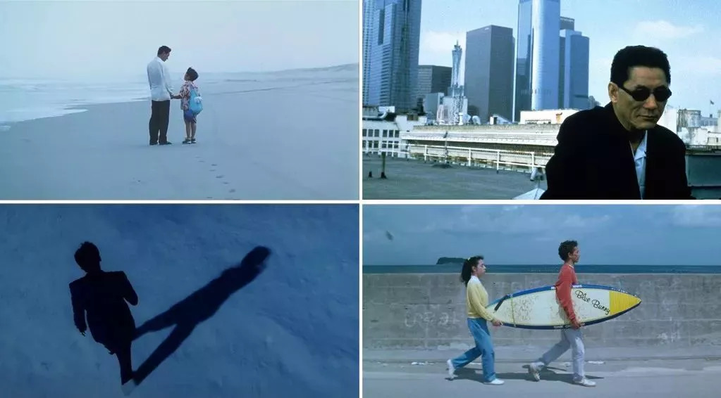 他和父亲,一生的交流不超过三次,唯一一次父亲出游,是带着他去海边,但哪怕就一次温情一刻,也对北野武的电影造成了深远影响,大海和蓝色成了他日后电影里的特殊美学符号,压抑又温馨,连服装品牌名都起名为“北野武蓝。”