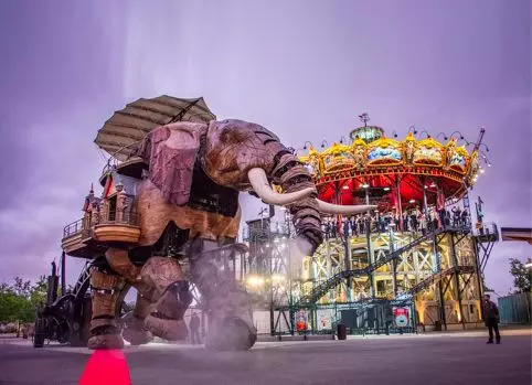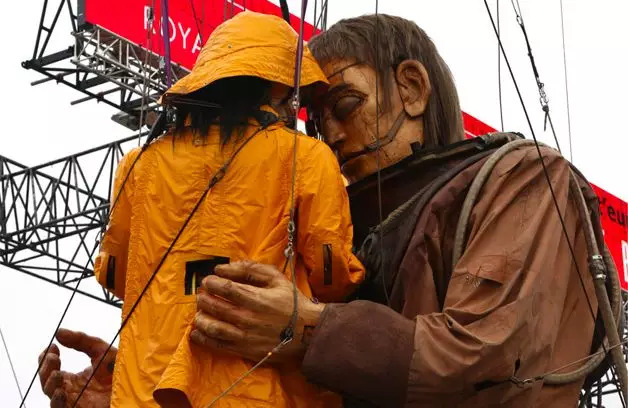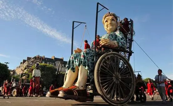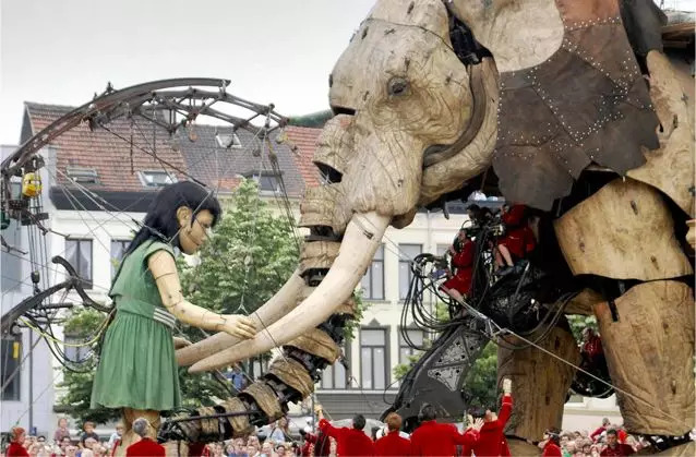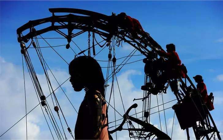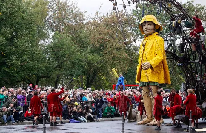 直到1993年,这个艰辛生存的民营剧团终于获得了国家的艺术经贴,在勒阿弗尔国家火山森林景区的旅游项目中,他们将心中巨大的梦想终于孵化而出——一座9米高的巨型机械木偶。这个木偶的从天而降,震惊了所有的人,我们以仰望的姿态来注视我们的创造,不禁要低头沉思:这个巨的小可爱,不就是那个猛烈想要长大的我们自己嘛?可是长得再高,再大,再壮,可我们心底还是住着一个小孩。