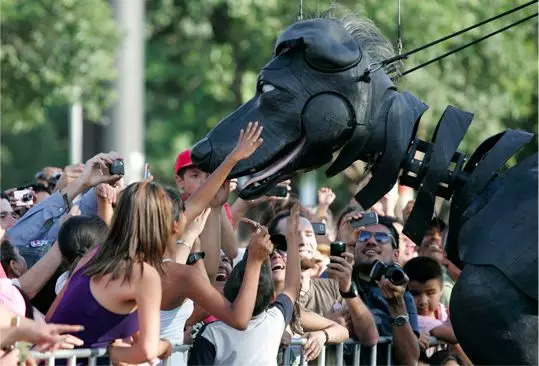 这项工作并不容易,但我作为操纵木偶的演员,这项工作为我提供了很多帮助。我们创造的是一个有灵魂的巨人,每个人物都有身份所投射的性格。比如那位80多岁的巨人老奶奶,她是人们心中一个长者的象征,受到许多人的追捧。 我坚持要让她换上得体的衣服,衣服下面还要透着有弹性的皮肤,这是生命的体征。也像墨西哥狗Xolo一样,它的欢腾是为要释放出某种对人类的情感。为了给老奶奶“植皮”,我们研发了新型材料,如莱卡,硅胶,纸……
