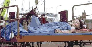 为一座7.50米高的巨人打扮,你会频繁地上蹿下跳二三层楼的高度之间,为整理奶奶的裙子下摆,光这一项工作就是四个小时。巨人老奶奶的裙子是三层120米的布料制作出来的,习惯于这些XXXXXXL尺度。对于日常生活中的衣服,我觉得太迷你了,无所适从。给老奶奶穿衣服,还必要研究她的运动幅度,因为老奶奶的行动缓慢,衣服要让她穿着舒服,便于行走。