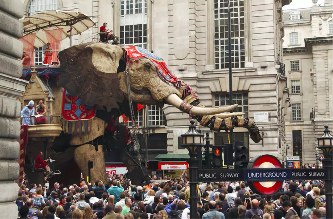 在英国伦敦街头上演《苏丹的大象》讲述大象穿梭时光的神话故事;在法国南特巨人奶奶上演了一出生命的挽歌;尤其是2009年,为了纪念柏林墙倒塌20周年,柏林市特别邀请机械巨人木偶剧团,以柏林冷战时期的亲人分离为背景,上演了一出《柏林墙》城市实景剧。