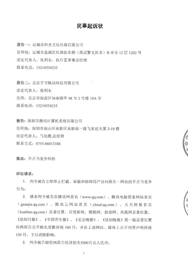 附今日头条起诉状: