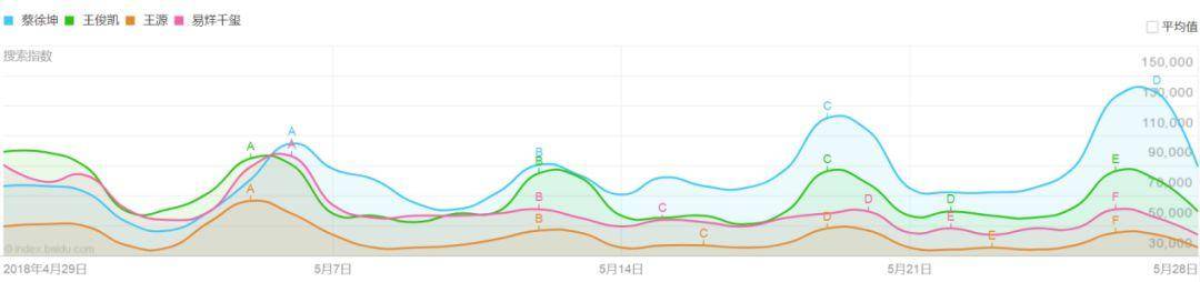 娱乐圈瞬息万象,偶像产业更新迭代更是家常便饭。查看几位当红小鲜肉们的百度指数,近一个月的数据显示,蔡徐坤热度已与一线偶像鹿晗、TFBOYS等人相当,甚至远超吴亦凡、张艺兴、李易峰、杨洋等曾经炙手可热的流量小生。