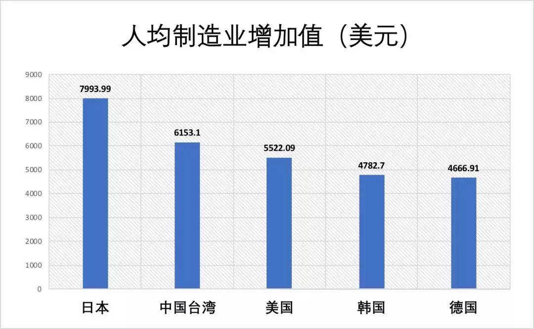 中国(大陆)约等于日美德的1/3到1/4,反而是中国台湾的表现能刷新不少人的成见。