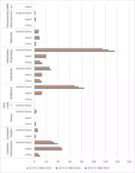 中美日企业结构比较/来源:普华永道思略特2017全球创新1000报告