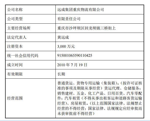 远成集团1996年8月16日成立,注册资本2.3亿元,法定代表人黄远成。进入远成集团官网可以了解到,远成集团是一家在物流行业拼搏近三十年,集物流、商流、资金流、信息流服务为一体的大型现代综合物流服务企业集团,现已形成多层次、广覆盖、独具特色的综合物流体系,旗下拥有五大业务板块:远成物流、远成快运、远成供应链、远成物流城、远成冷链。该公司是中国首批5A级“综合服务型物流企业”。