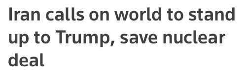 【伊朗呼吁各国抵制美国霸权行为,试图挽救核协议】伊朗国家媒体报道,伊朗外交部长周日致信一些国家外长,呼吁各国抵制美国的霸权行为,在美国退出伊朗核协议后,伊朗外长在加大努力试图挽救这项核协议。