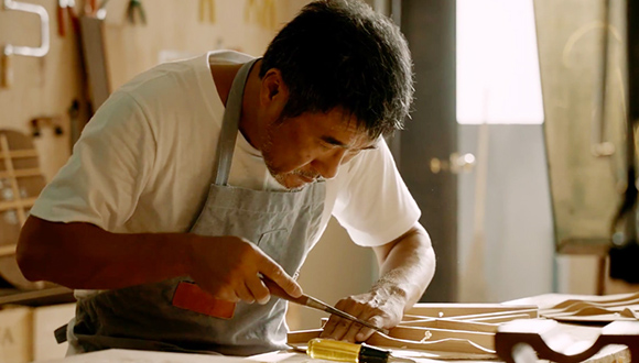 能让New Balance与众不同的特质中,有一项便是它的产地。新广告中,还有一支主题为“致匠心”的微电影,出演广告的是台湾音乐人李宗盛。在短片里,New Balance制鞋匠的工作片段和李宗盛细心打磨吉他的近景以蒙太奇的手法交叉出现。十多年来执着手工制作乐器,并创办“李吉他”品牌的李宗盛娓娓讲述着身为音乐人、制琴师的感悟。New Balance则借此来展示英产、美产系列独有的“工匠精神”。