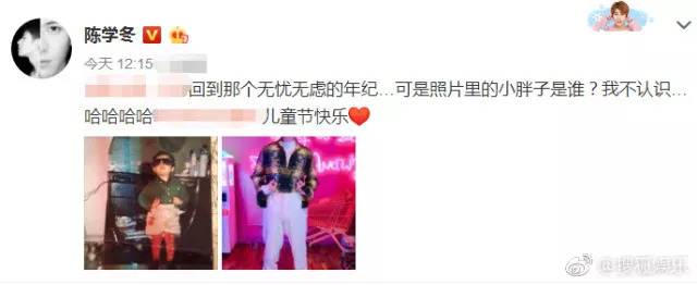 陈学冬今日晒童年对比照,并称“想回到那个无忧无虑的年纪,可是照片里的小胖子是谁?我不认识,哈哈哈…”,图中Mini冬俨然一副小胖子模样,头戴墨镜身穿红衣配绿裤,酷劲儿十足。成年冬模仿了小时候的姿势,变得更加帅气有型。