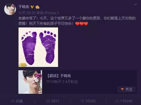 秋瓷炫、于晓光夫妇于6月1日凌晨在首尔某医院喜得一子,现母子平安其所属社BH方面表示,目前秋瓷炫正在安心静养恢复中。两人2015年9月公开恋情,2017年1月18日领证,10月确定怀孕。