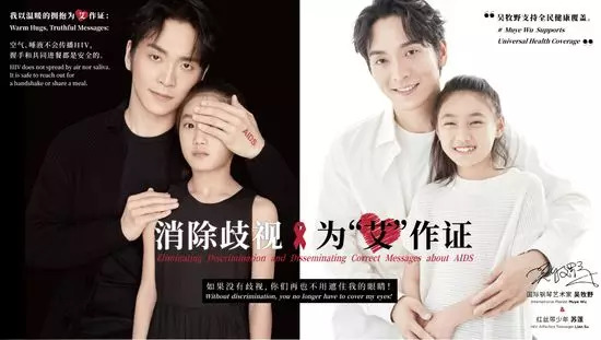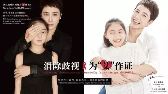 演员蒋雯丽、王嘉、关晓彤、国际钢琴艺术家吴牧野和HIV感染女孩一同拍摄的为艾作证公益海报今日发布。海报中小女孩被抱在怀中捂住眼睛,与“如果没有歧视,你们再也不用遮住我的眼睛”相呼应。