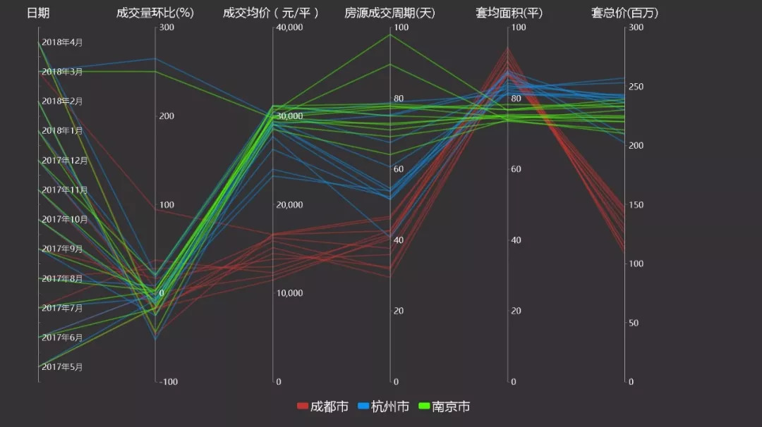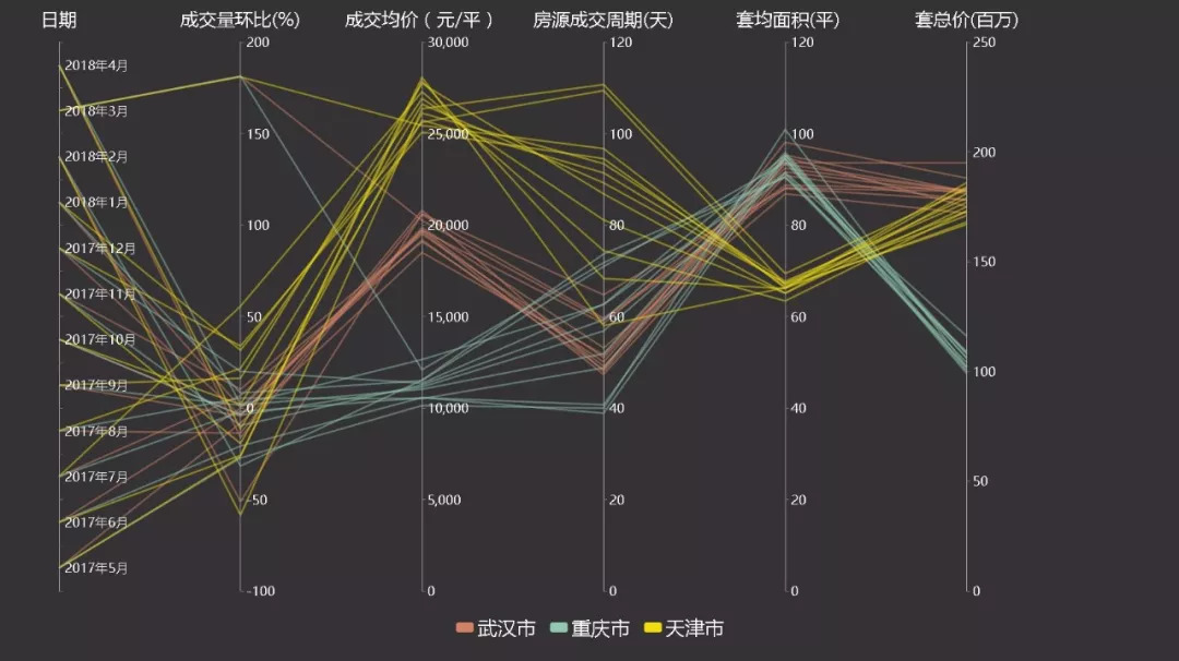在5项反应市场交易情况的数据中,天津可视为一个孤例。成交量大起大落,套总价波动剧烈,2017年12月甚至跌至167万,比同年5月下降近20万!不过,随着天津落户新政的出台,楼市热度也在一路攀升,这种情况会很快得到缓解。