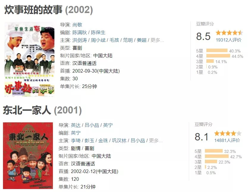 或许是《编辑部的故事》和《我爱我家》给国产情景喜剧立了太高的标杆,这一题材在此后十年左右的时间都未有叫好又叫座的作品诞生,直到2001年《东北一家人》和《炊事班的故事》的出现,国产情景喜剧再次迎来创作小高峰。