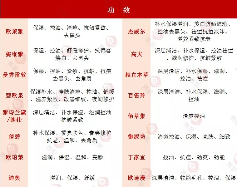 ▍部分品牌男士护肤产品功效梳理(以天猫旗舰店为例)