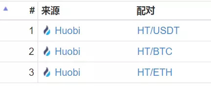 火币HT仅有USDT、ETH、BTC三个基础交易对。