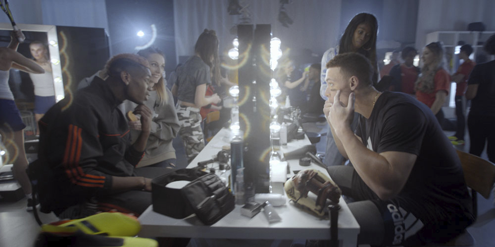 影片中,镜头首先来到演出后台,看到来自各个领域的运动员和艺术家们正在积极准备着。穆里尼奥以类似教练的指挥身份坐镇后台,将苏亚雷斯、冯·米勒、加布里埃尔·热苏斯、卡莉·克劳斯等人送上舞台。