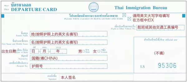 10.Country Where You Boarded 出发国家:哪个国家飞到泰国,就写哪个国家