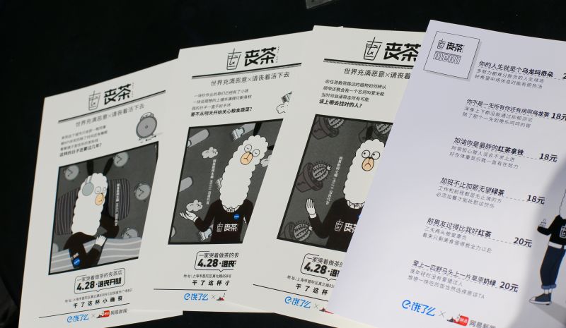 邬宋钱仍然对2017年五一期间在朋友圈刷屏的“丧茶”记忆犹新,她是饿了么品牌高级总监。这个和网易新闻合作、后来成为营销“爆款”的项目,前后只花了2周左右的时间,也是真正意义上饿了么的第一个品牌跨界快闪店。