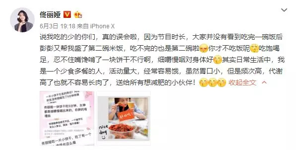 佟丽娅回应饿瘦的:节目展现的是第二碗米饭
