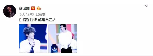 今日,蔡徐坤在微博晒出两张发型不同的照片,并配文:“你俩别打架,都是自己人。”还在自己微博下评论称:“我真的没偷图(十秒删)”逗趣十足!照片中,蔡徐坤梳着两种不同的发型既可爱又帅气,十分吸晴。