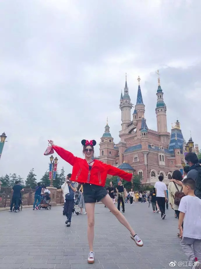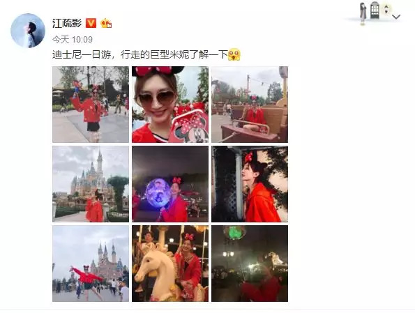 网友迪士尼偶遇江疏影戴米妮头饰俏皮可爱