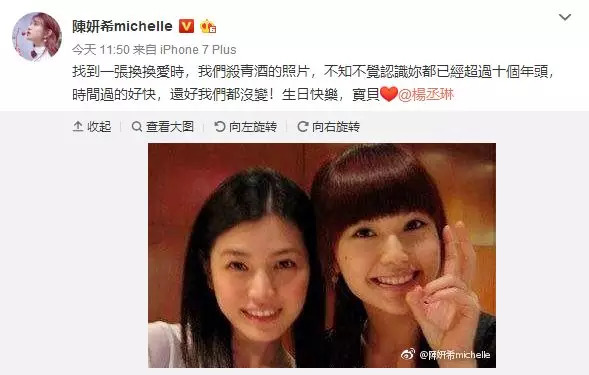 陈妍希为杨丞琳庆生:还好我们都没变