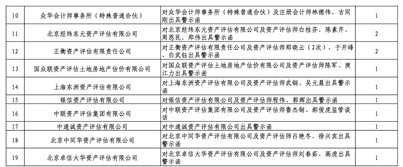 证监会对中兴财光华会计师事务所、众华会计师事务所、中联资产评估集团有限公司等19家中介,数十名律师、资产评估师出具警示函。